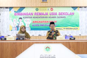 Sleman (MBS Yogyakarta) – Edukasi tentang persiapan berkeluarga kepada remaja bukanlah hal yang dianggap tabu. Pasalnya, usia-usia remaja rentan berada dalam situasi kenakalan remaja, pergaulan tidak sehat, serta kondisi emosional yang tidak stabil. Melihat fenomena tersebut Kementerian Agama Kabupaten Sleman menyelenggarakan kegiatan Bimbingan Remaja Usia Sekolah (BRUS) pada hari Kamis (16/10). Sebanyak 4 Madrasah Aliyah dan SMA mengikuti kegiatan ini, di antaranya MA As-Salafiyah Mlangi, MA Sunan Pandanaran, MA Ibnul Qoyyim, dan SMA MBS Sleman Yogyakarta yang berlangsung di sekolah masing-masing. Untuk SMA MBS Sleman Yogyakarta sendiri, merupakan angkatan ke-IV dan berlangsung di ruang Aula Ki Bagus Hadikusumo dengan peserta santriwati kelas 10 SMA MBS.