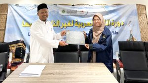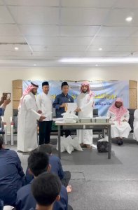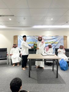 Makkah Al-Mukarramah (Saudi Arabia) – Waqf Abdul Qadir Nassier, salah satu ruangan di Hotel Al-Azizia, menjadi tempat berlangsungnya penutupan Daurah Internasional Kota Makkah. Kamis pagi (18/09) pukul 09.15 waktu Makkah, peserta daurah internasional Pondok Pesantren Modern Muhammadiyah Boarding School Yogyakarta mengikuti penutupan dengan suasana khidmat dan penuh haru. Markaz Al-Ijlal memberikan sertifikat penghargaan kepada 52 peserta daurah, 2 pendamping, serta ustaz Asep sebagai mutowif.