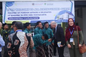 Sleman (MBS Yogyakarta) – MBS Yogyakarta menyambut kedatangan rombongan delegasi dalam rangka dialog Lintas Agama dan Lintas Budaya RI – Uni Eropa (DLALB RI – UE) pada Sabtu (29/11). Kunjungan tersebut merupakan Indonesia – EU Interfaith and Intercultural Dialogue yang sebagaimana diketahui pertama kali berlangsung pada tahun 2012, guna mempelajari tentang keagamaan dan harmonisasi antarlintas agama dan lintas budaya di Indonesia. Bertempat di Aula Ki Bagus Hadikusumo, ustaz Fakih Udin, Lc. (Pimpinan MBS Yogyakarta), ustazah Rinna Fitriyah, S.Pd. (Bendahara Umum MBS Yogyakarta), ustaz-ustazah, dan perwakilan santriwan-santriwati menyambut dengan hangat perwakilan delegasi DLALB RI – UE yang terdiri dari delegasi Indonesia, Italia, Jerman, dan Perancis.