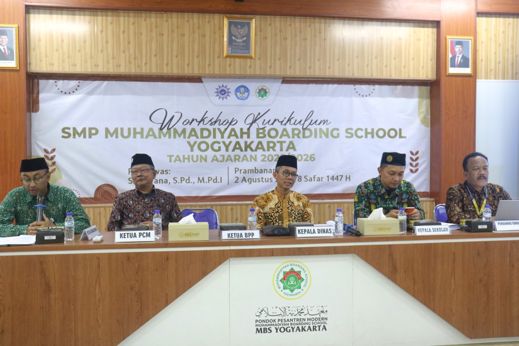 Yogyakarta- Workshop Pengembangan Kurikulum SMP Muhammadiyah Boarding School Yogyakarta digelar pada Sabtu (2/8) di Aula Ki Bagus Hadikusumo. Workshop ini dihadiri oleh 20 perwakilan santri, perwakilan wali santri, perwakilan MGMP MBS Yogyakarta, Kepala SMP MBS Yogyakarta, Tim Pengembang Kurikulum, Ketua PCM Prambanan, Perwakilan PDM, Kepala Dinas Pendidikan Kabupaten Sleman, Pengawas SMP MBS Yogyakarta, PLH BPP, BPP Bidang Pendidikan, Manager HBC, dan Staff HBC.